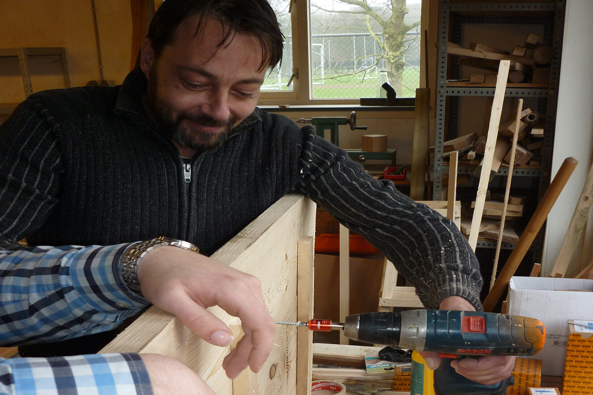 De houtwerkplaats bevindt zich op het terrein van de Moestuin Maarschalkerweerd in Utrecht (nabij Galgenwaard). Naar gelang je vaardigheid werk je aan restauratie projecten zoals fort luiken, loungebanken, terras setjes, opdrachten of een eigen project.